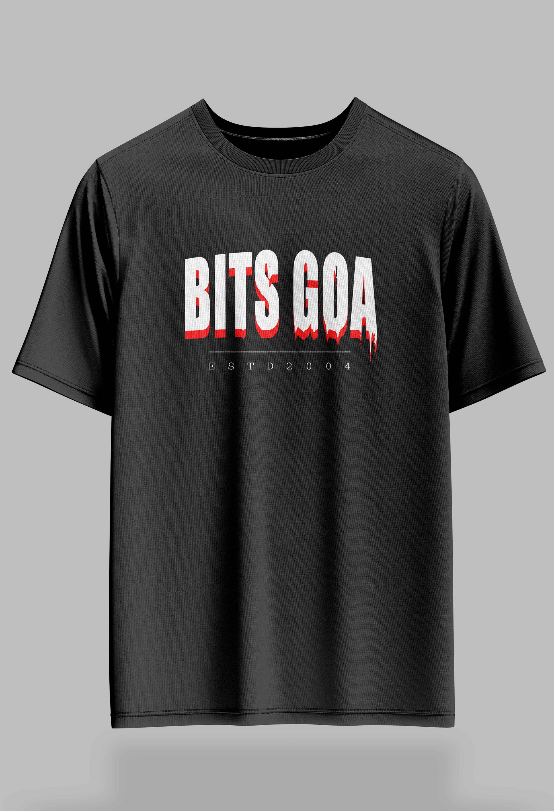 🎨 Front: BITS Goa in raw, blood-drip style — repping your roots