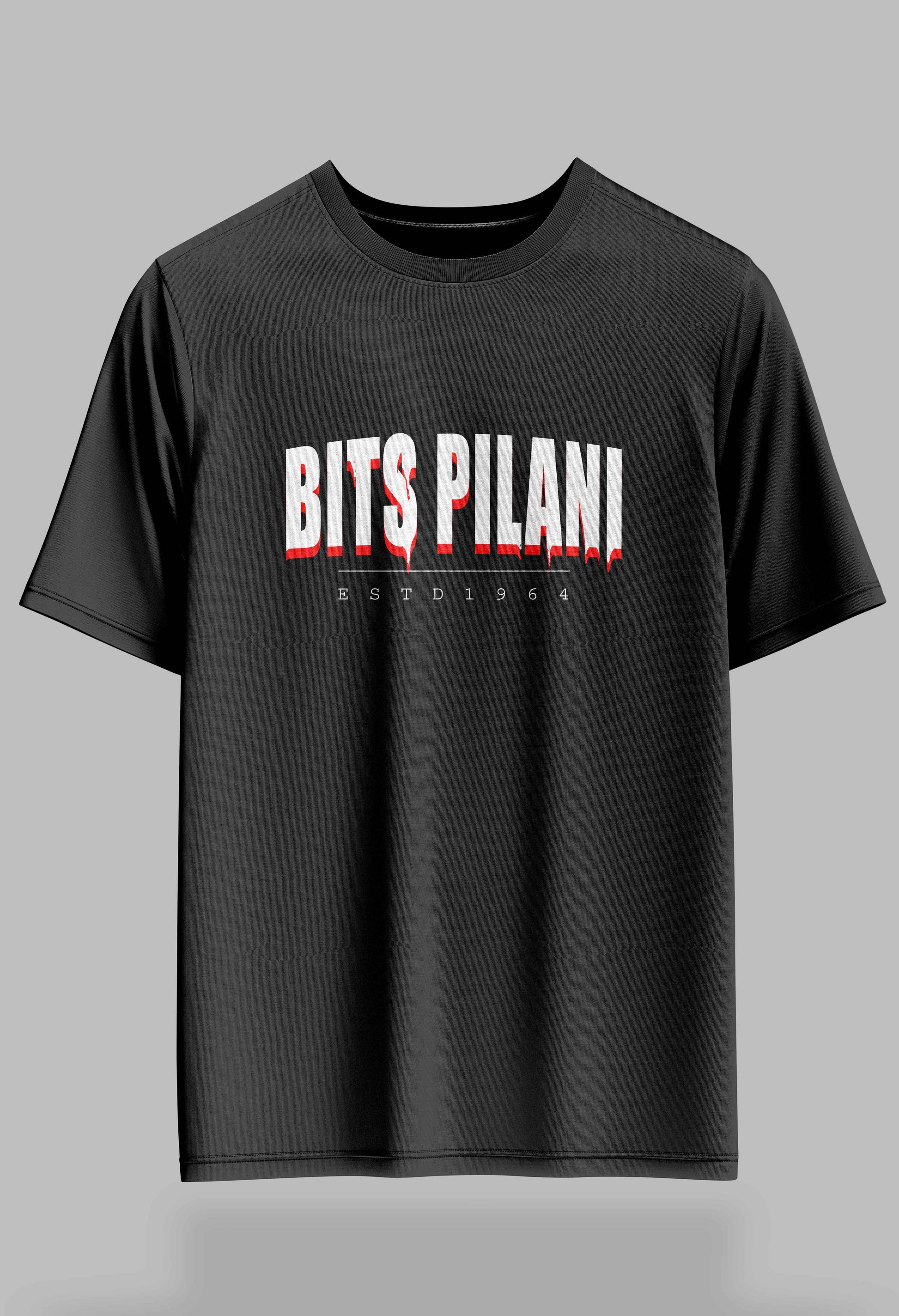🎨 Front: BITS Pilani in raw, blood-drip style — repping your roots