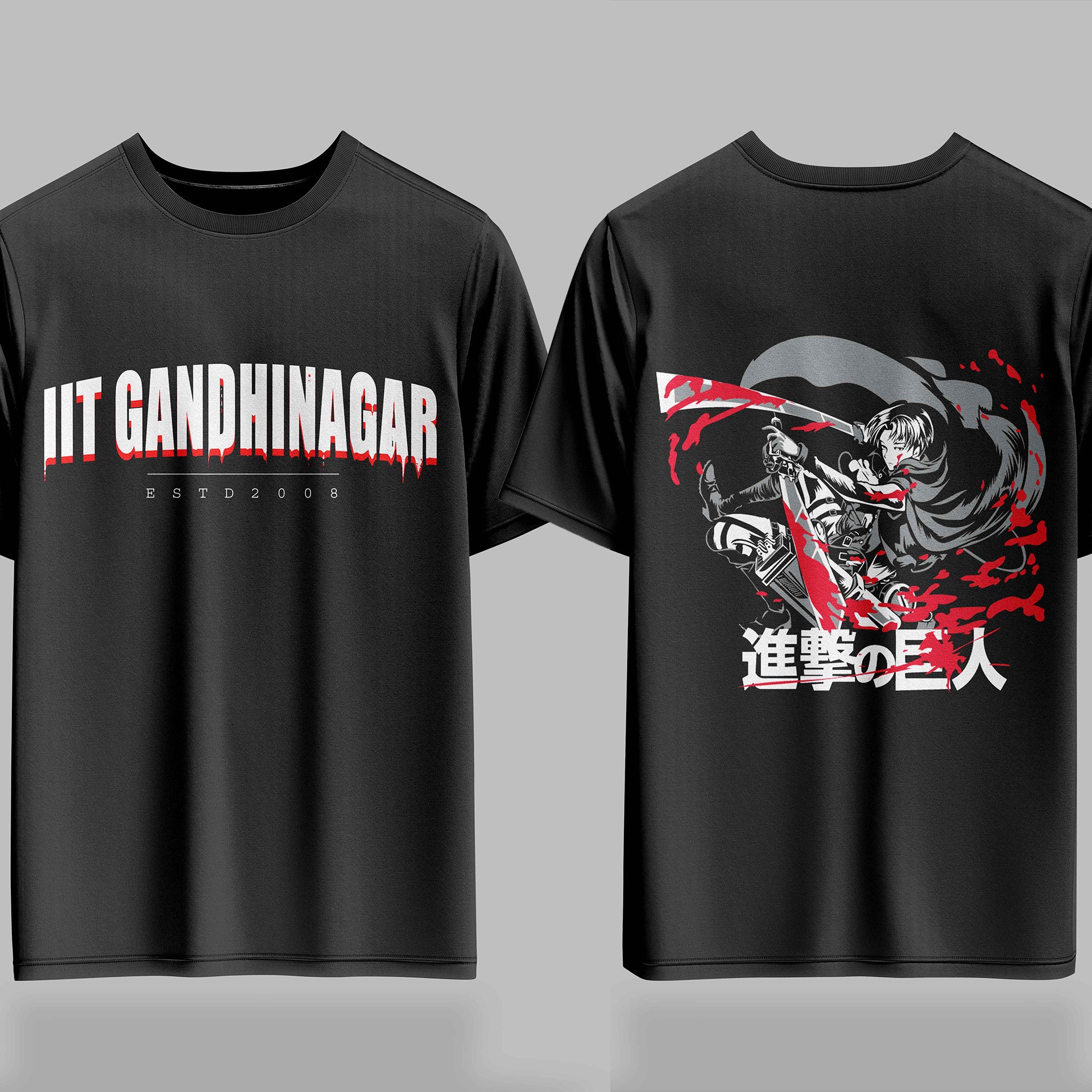 🎨 Front: IIT Gandhinagar in raw, blood-drip style — repping your roots