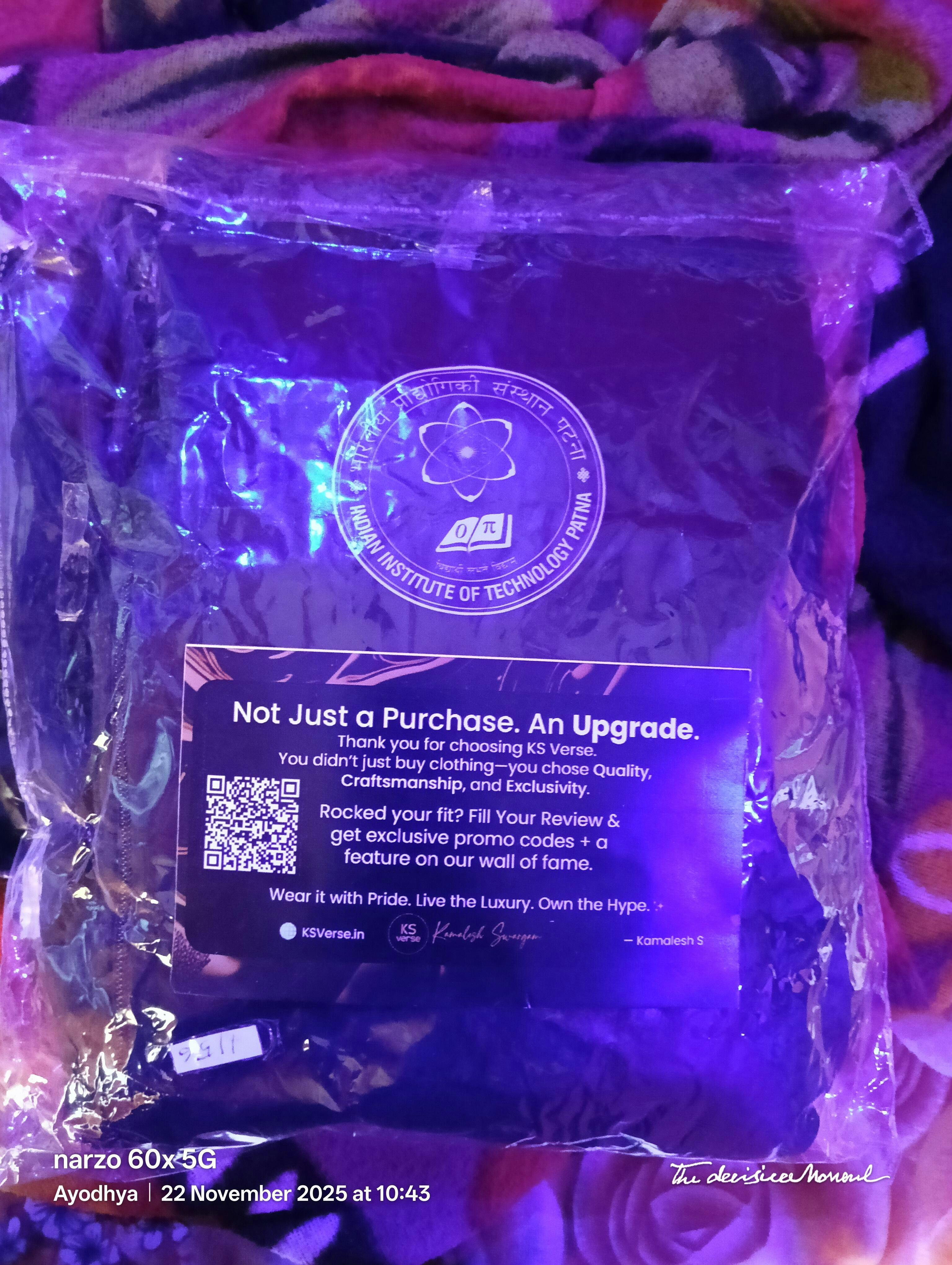 Unlike mass-market tees, KS Verse apparel is limited edition, campus-exclusive, and crafted with 240 & 320 GSM heavy-weight cotton for a luxury feel. You’re not paying just for a t-shirt/jacket — you’re investing in durability, premium fabric, original artwork, and exclusivity.